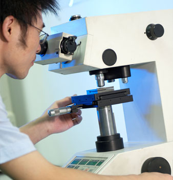 Dynamo performance and chemical components of all raw materials are inspected. Chemical equipment includes: FT-IR CS Analyzer, photometric colorimeter, electrolyte analyzer, salt fog testing case. Dynamo equipment includes: Rockwell hardness tester, micro-Vickers hardness tester, electronic pull power tester, profiler, eddy current conduct meter, coating thickness tester. All raw materials are subject to test batch by batch according to furnace number. 3D coordinate tester and other testing software greatly improve the company’s ability to guarantee product quality.