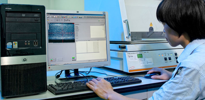 Dynamo performance and chemical components of all raw materials are inspected. Chemical equipment includes: FT-IR CS Analyzer, photometric colorimeter, electrolyte analyzer, salt fog testing case. Dynamo equipment includes: Rockwell hardness tester, micro-Vickers hardness tester, electronic pull power tester, profiler, eddy current conduct meter, coating thickness tester. All raw materials are subject to test batch by batch according to furnace number. 3D coordinate tester and other testing software greatly improve the company’s ability to guarantee product quality.
